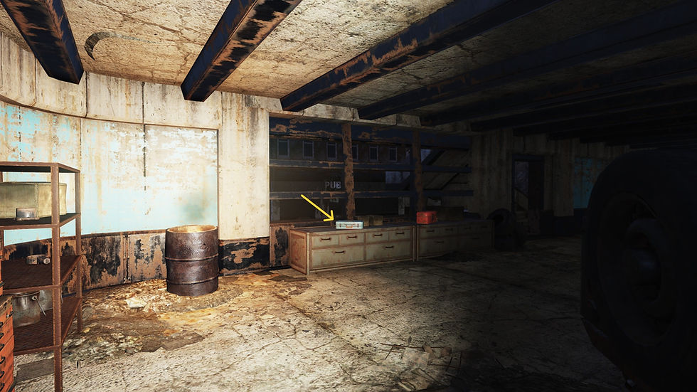 Look down and you’ll see a dome-shaped shed ahead. Run over to the shed and enter through the door on the right. The briefcase is on the ground to your left, between the two metal shelves.